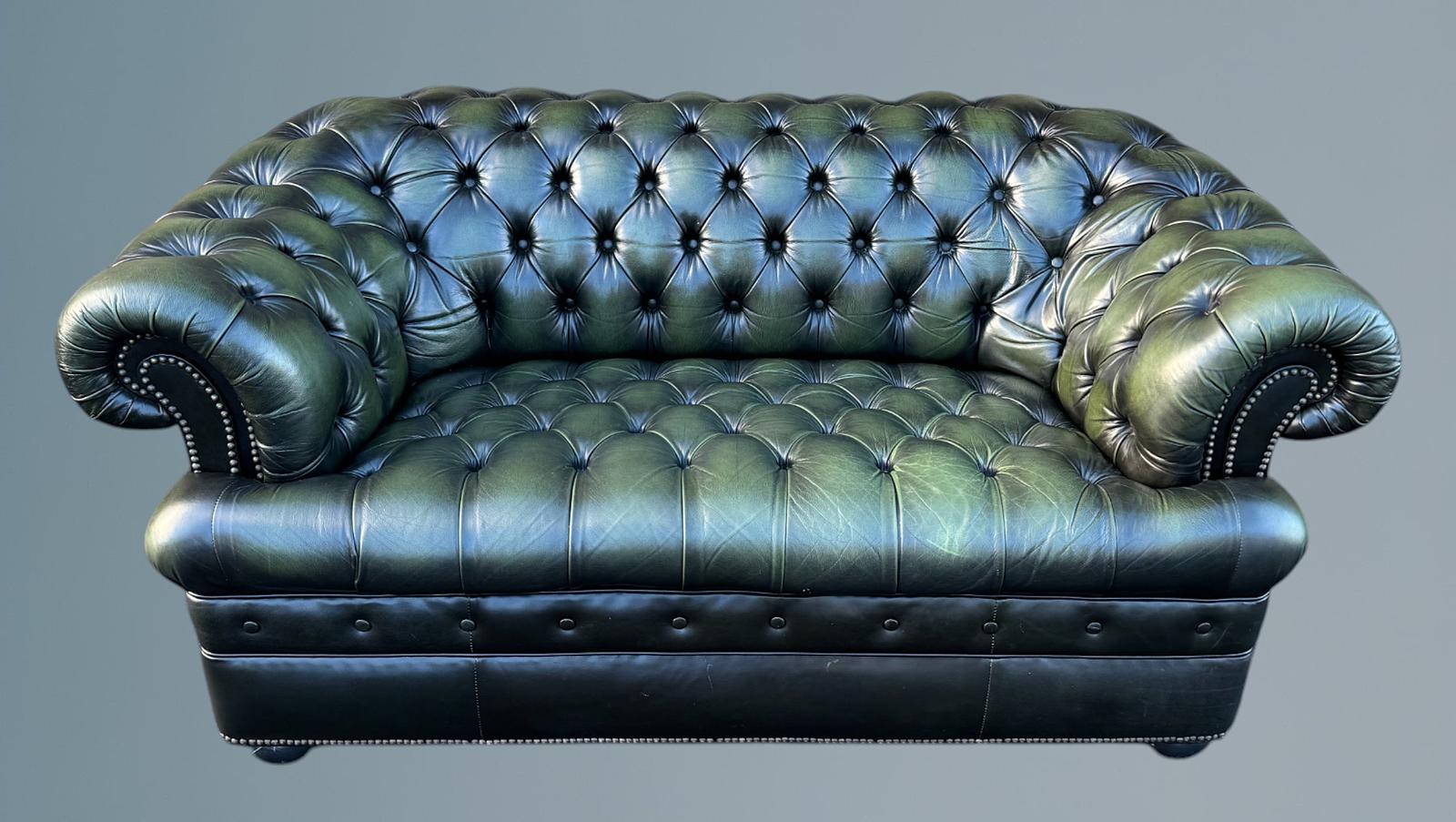 Green Leather Fully Buttoned Chesterfield Sofa / Settee (1 of 11)
