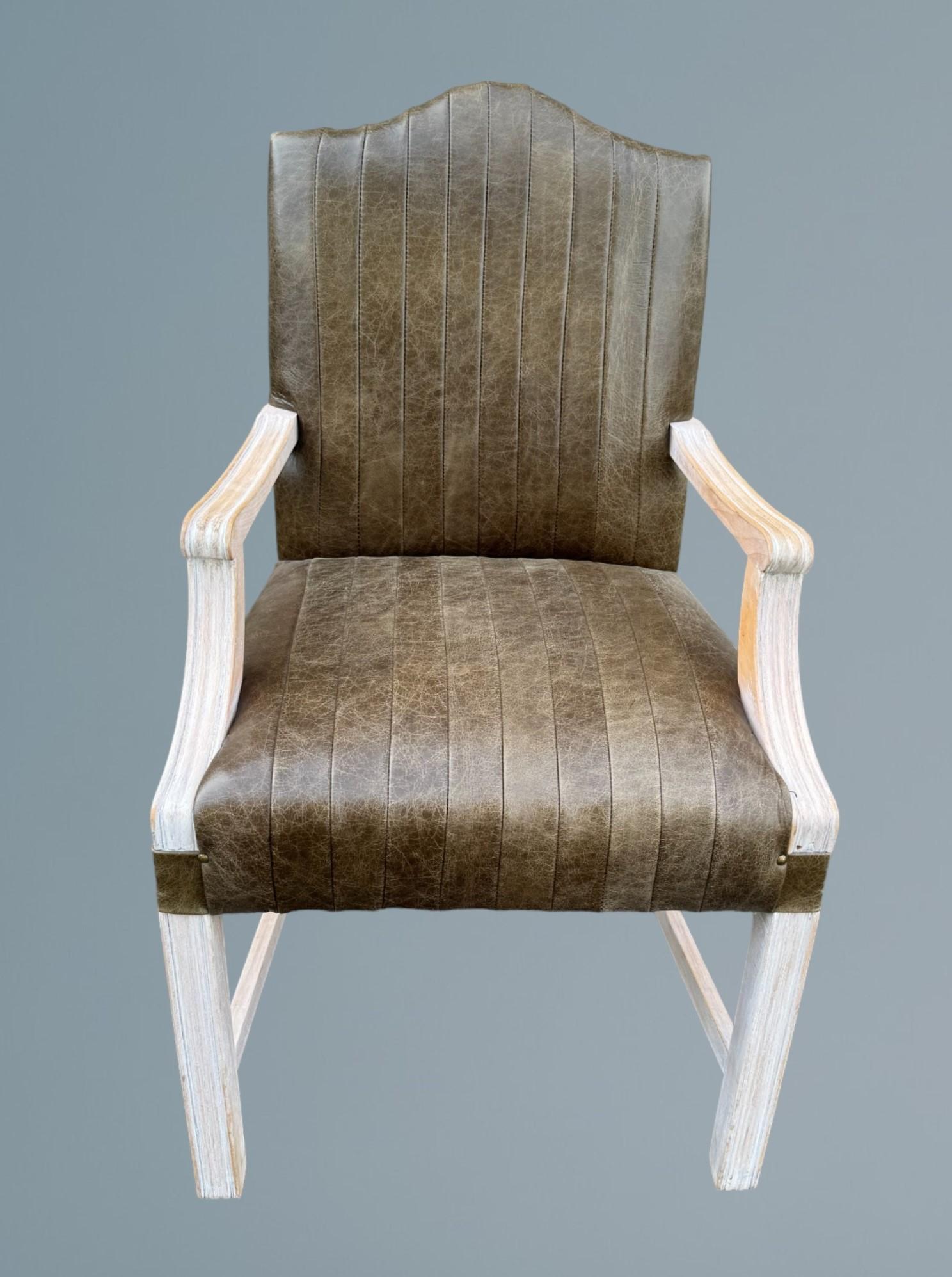 Green Leather & Limed Walnut Gainsborough Armchair / Desk Chair