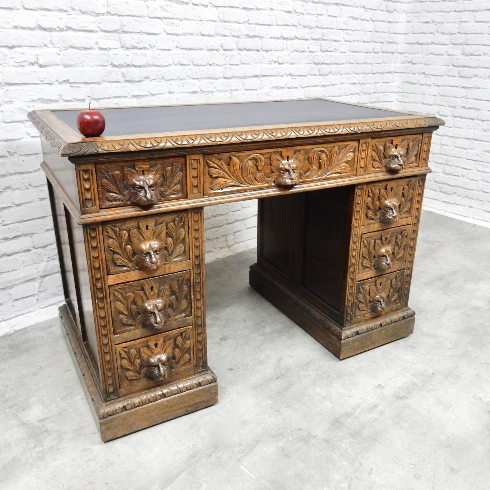 Green Man Carved Oak Desk