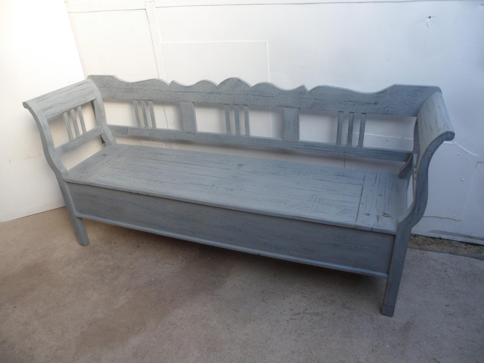 Grey & Blue 3 Seater Antique Pine Kitchen / Hall Box Settle / Bench