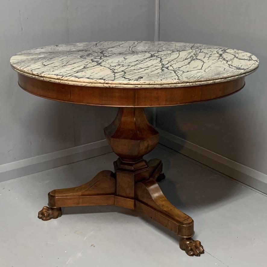 Grey Marble Top Walnut Gueridon Centre Table (1 of 5)