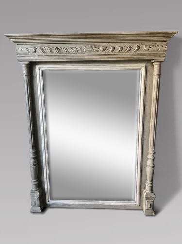 Grey Painted, Carved Overmantle Mirror (1 of 1)