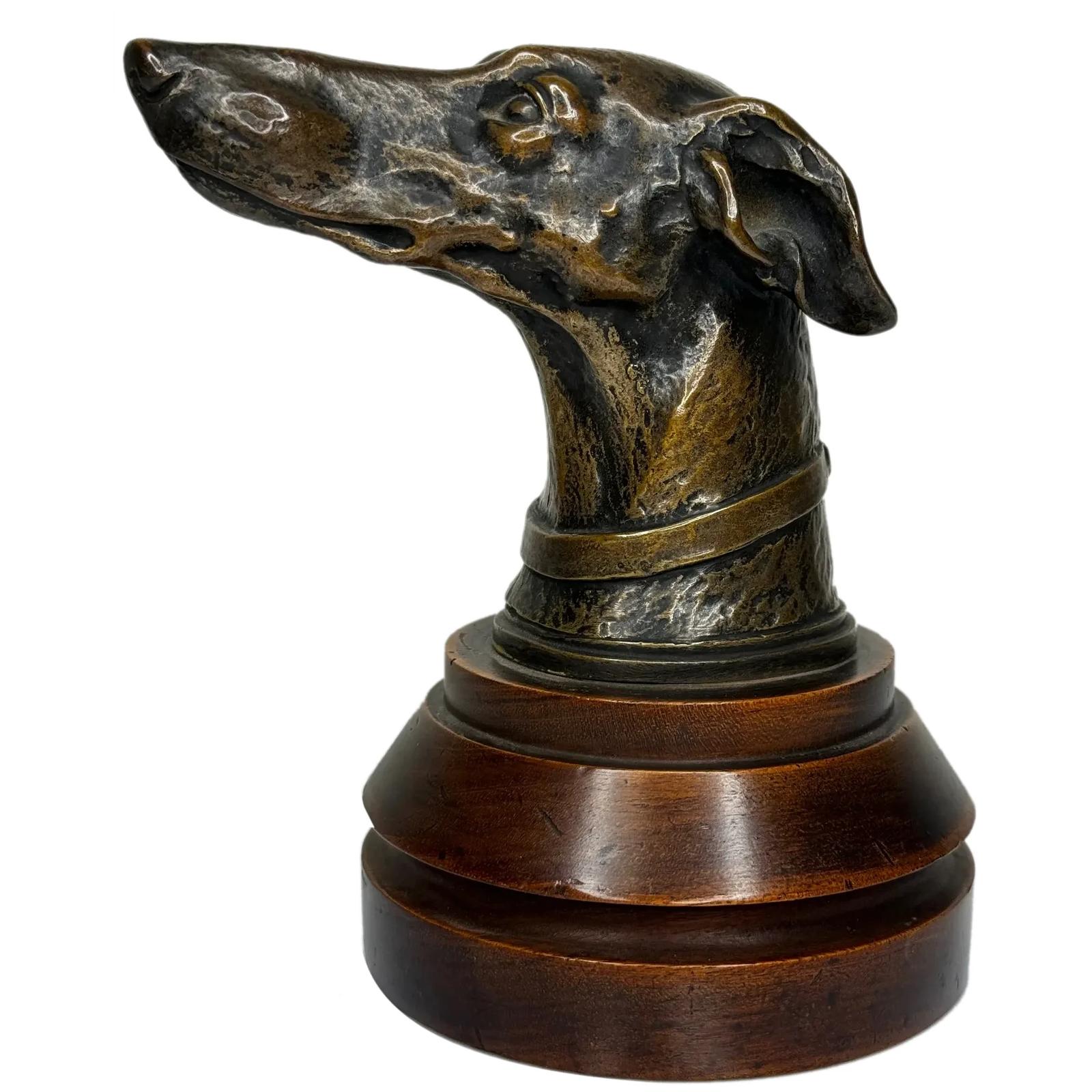 Greyhound Dog Bronze Car Mascot Sculpture on Base by Emile Brégeon