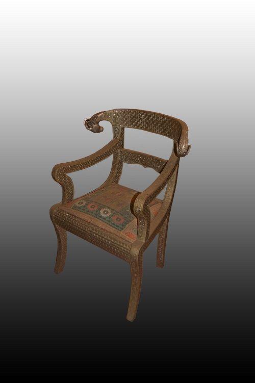 Group of 5 Indian Armchairs from the Early 1900s in Metal Veneer