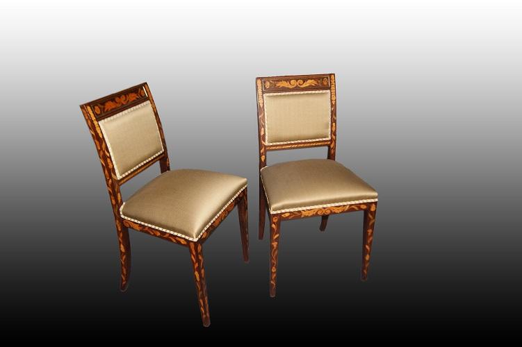 Group of 6 Richly Inlaid Dutch Mahogany Chairs