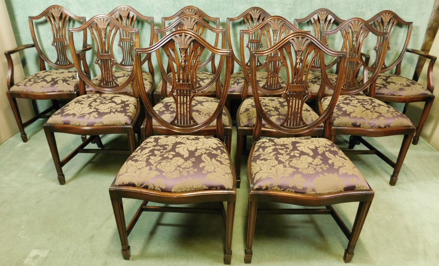 GT Rackstraw Twelve Mahogany Hepplewhite Style Dining Chairs