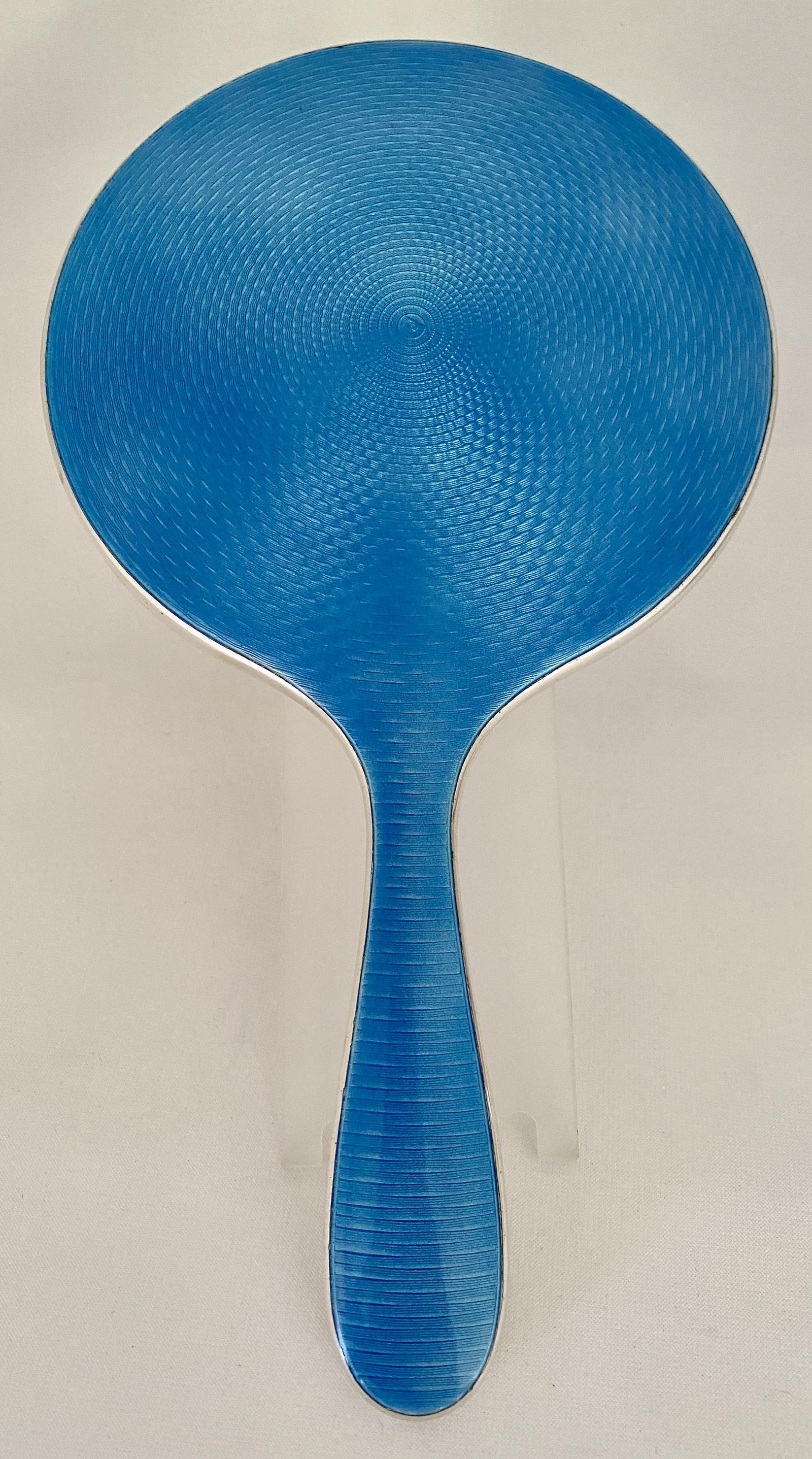 Guilloche Enamel on Silver Hand Mirror - Birmingham 1929
