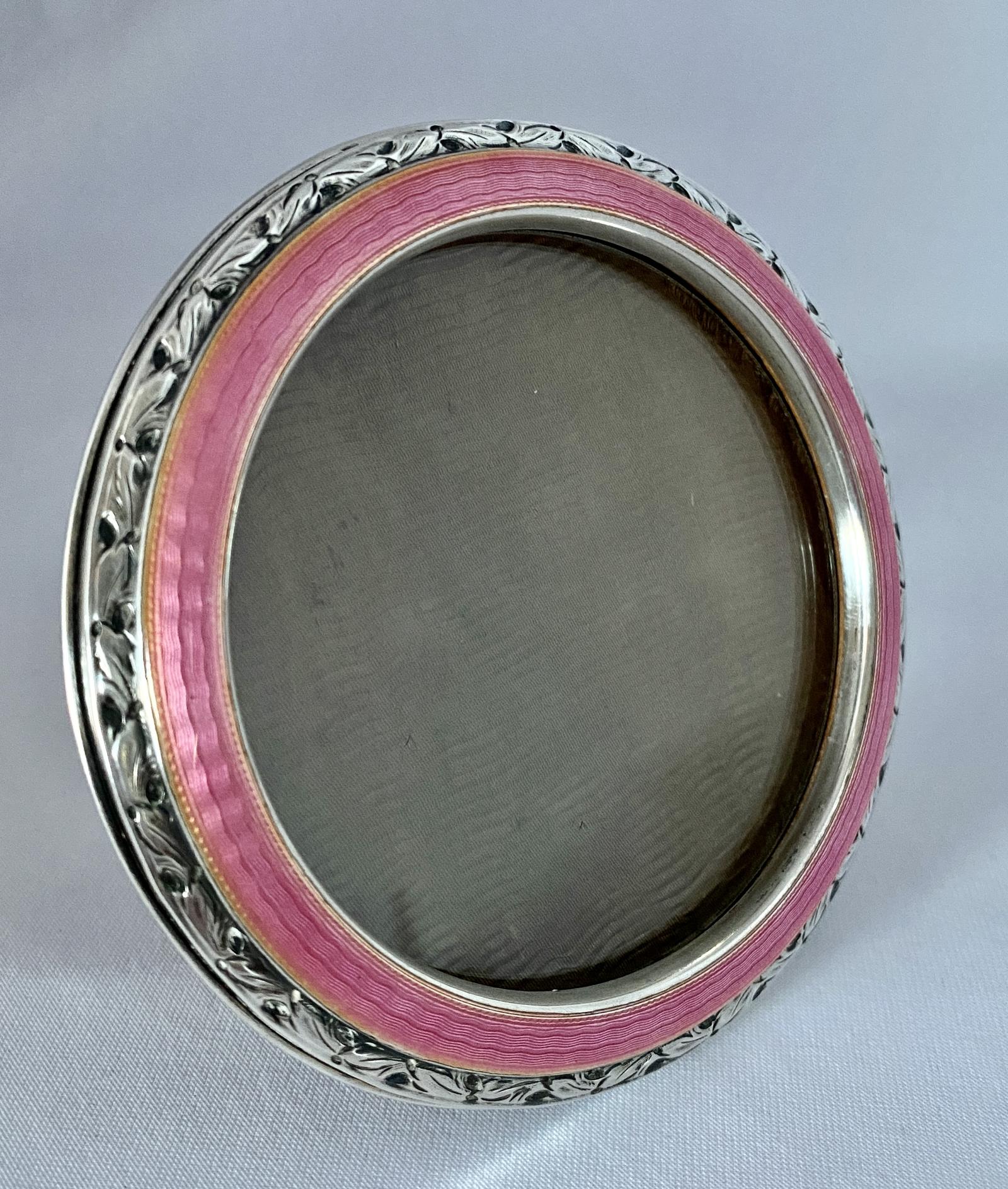 Guilloche Enamel on Silver Photo Frame. Birm 1924