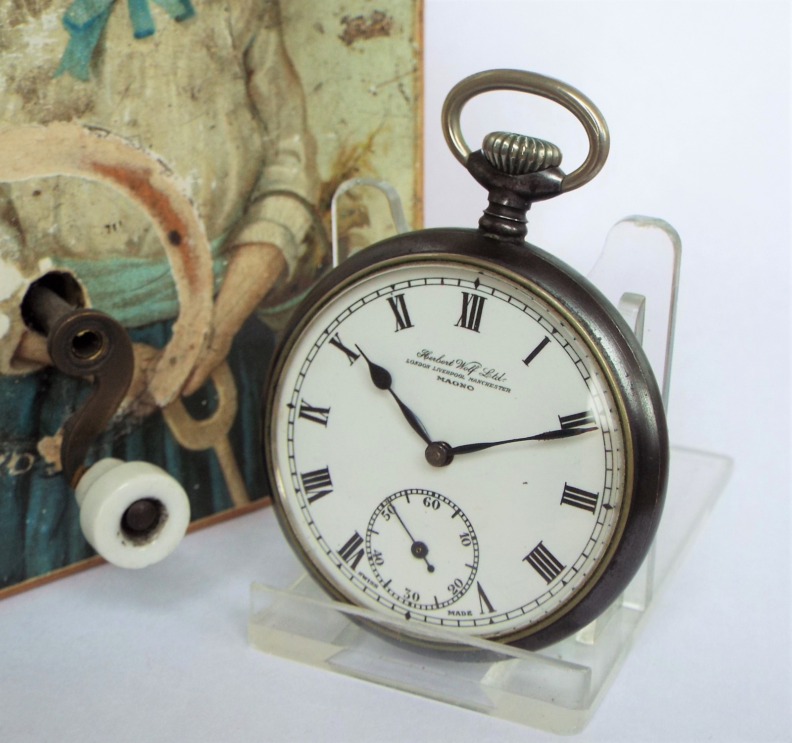 Gun Metal 'Magno' Pocket Watch Retailed by Herbert Wolf Ltd