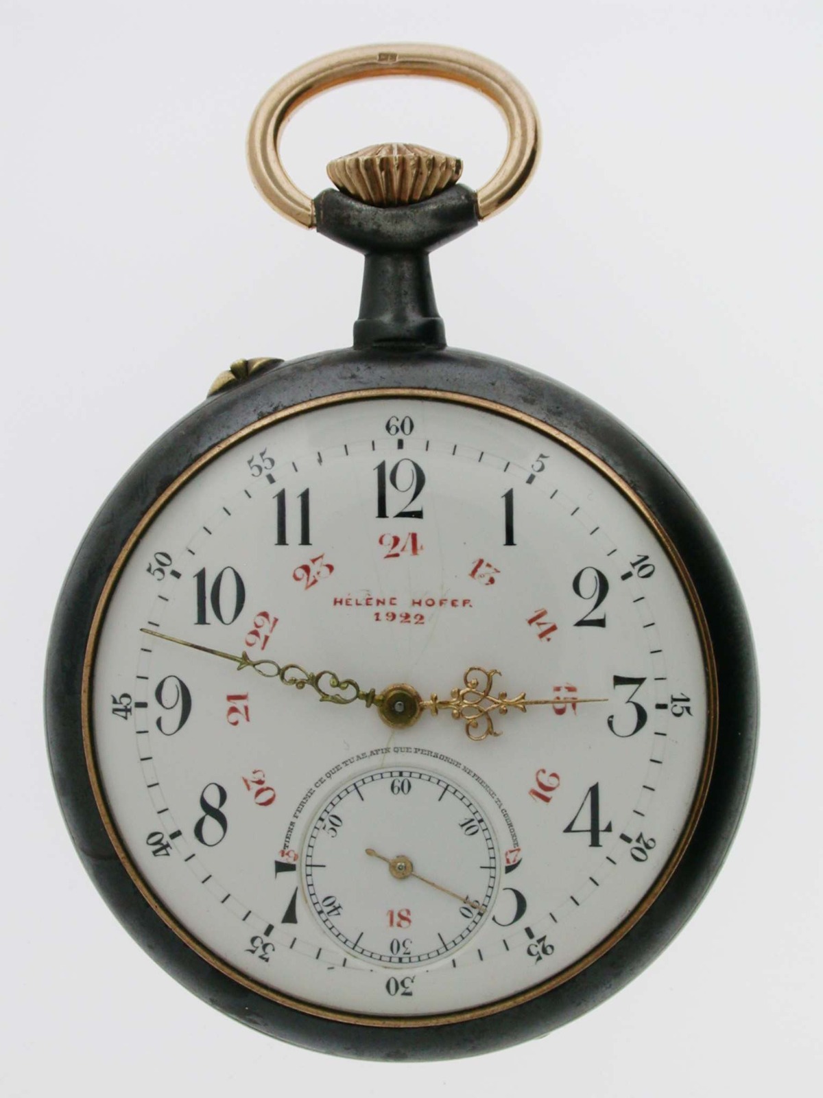 Gunmetal Helene Hofer Open Face Pocket Watch Swiss 1922