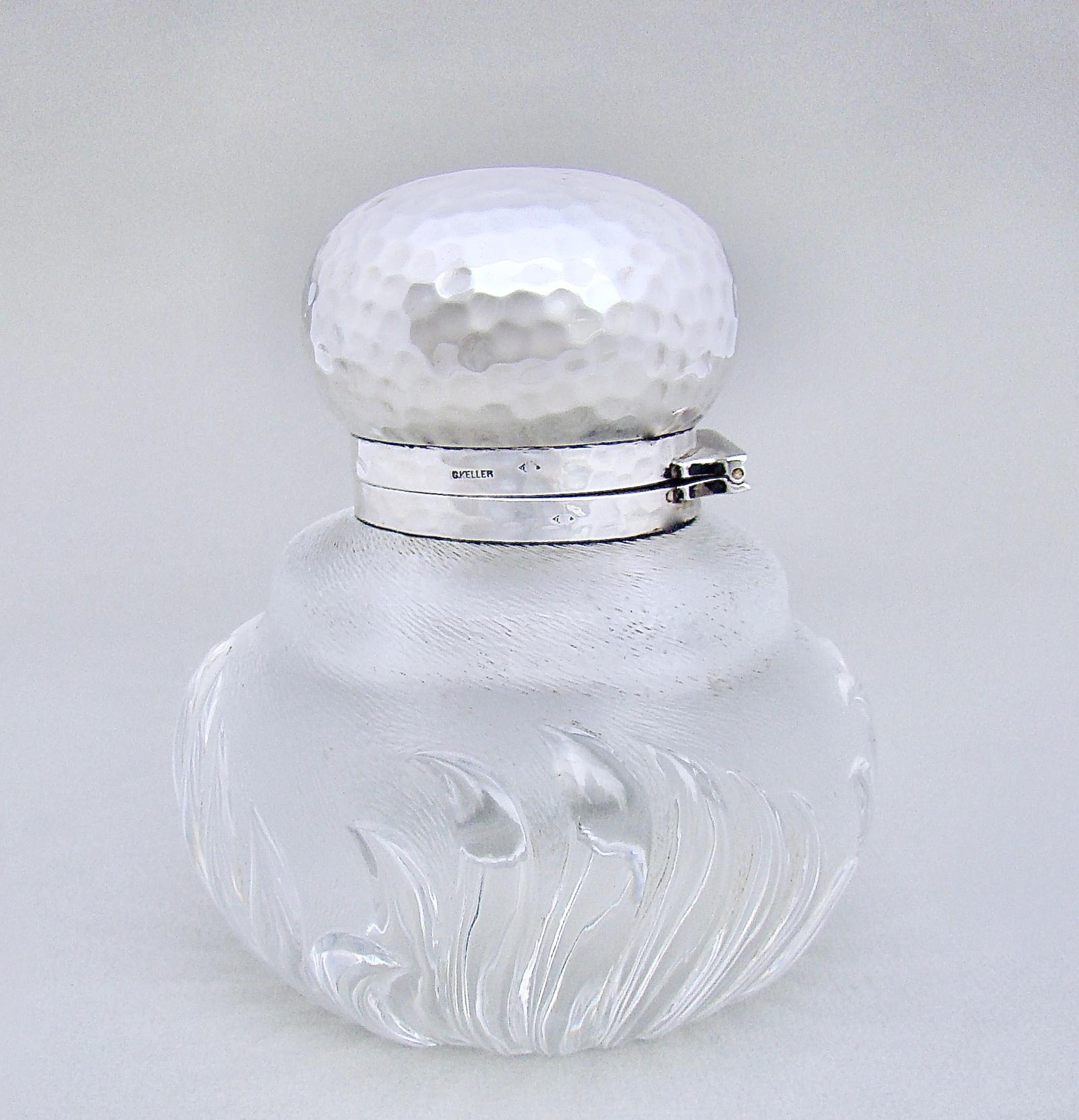 Gustave Keller Arts & Craft Silver & Frosted Glass Inkwell, Paris c.1900
