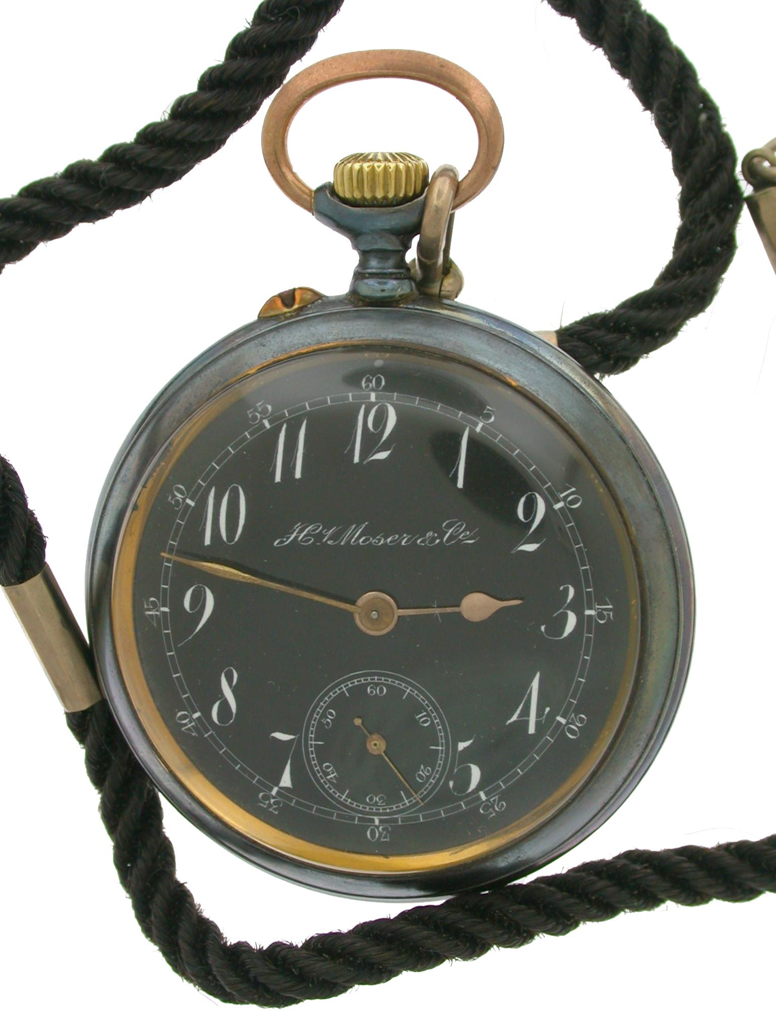 H. Moser Black Dial Open Face Pocket Watch Swiss 1900