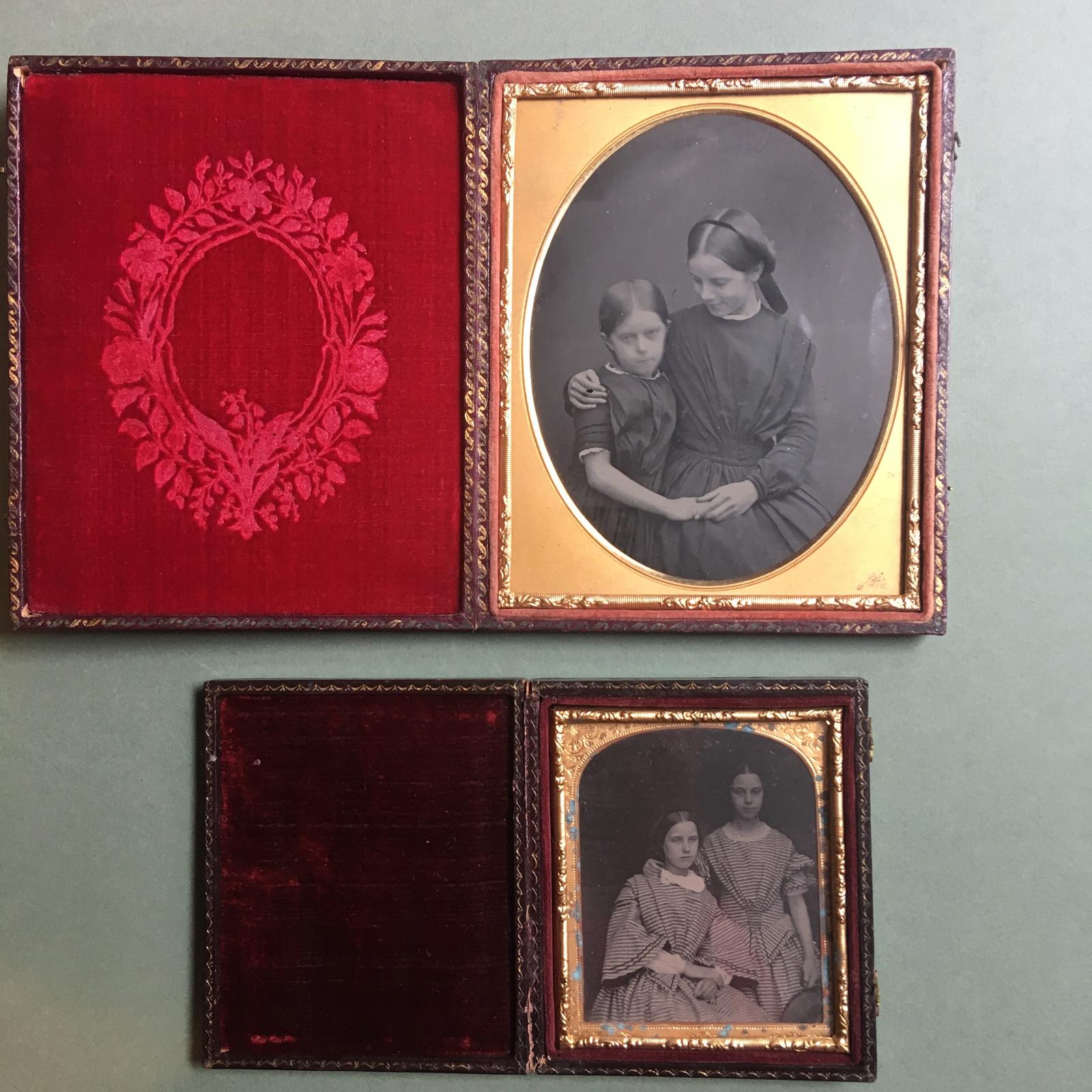 Half Plate & Sixth Plate Ambrotypes Both Depicting the Same Sisters