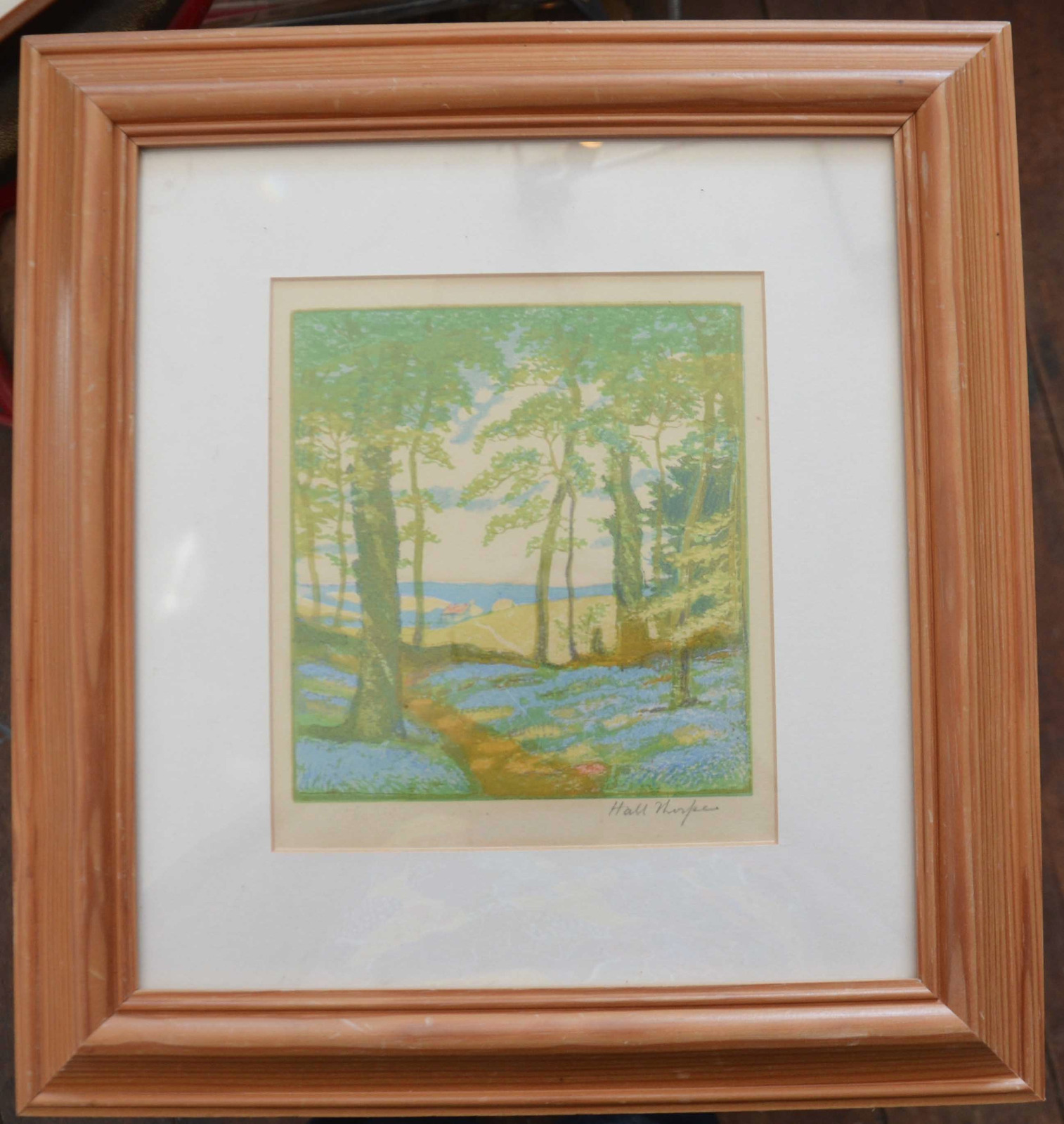 Hall Thorpe "Bluebell Woods" Woodblock Print, Signed in Pencil