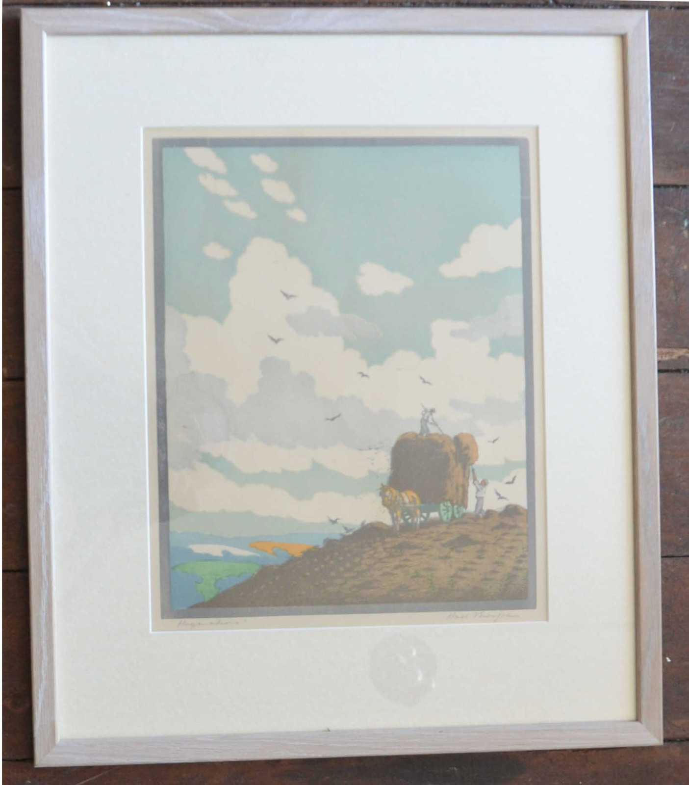 Hall Thorpe 'Haymakers' Woodblock Print, Signed & Titled in Pencil