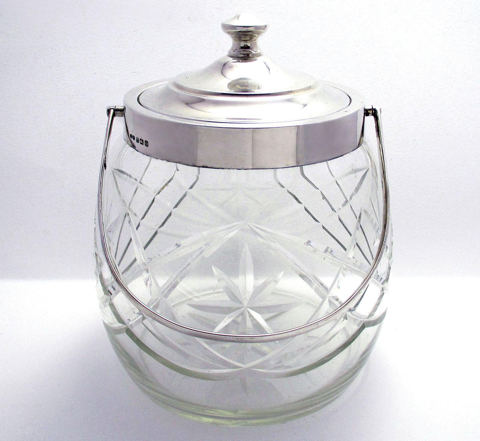 Hallmarked 1927 Solid Sterling Silver Mounted & Cut Glass Biscuit Barrel Cookie Jar Box Container (1 of 9)