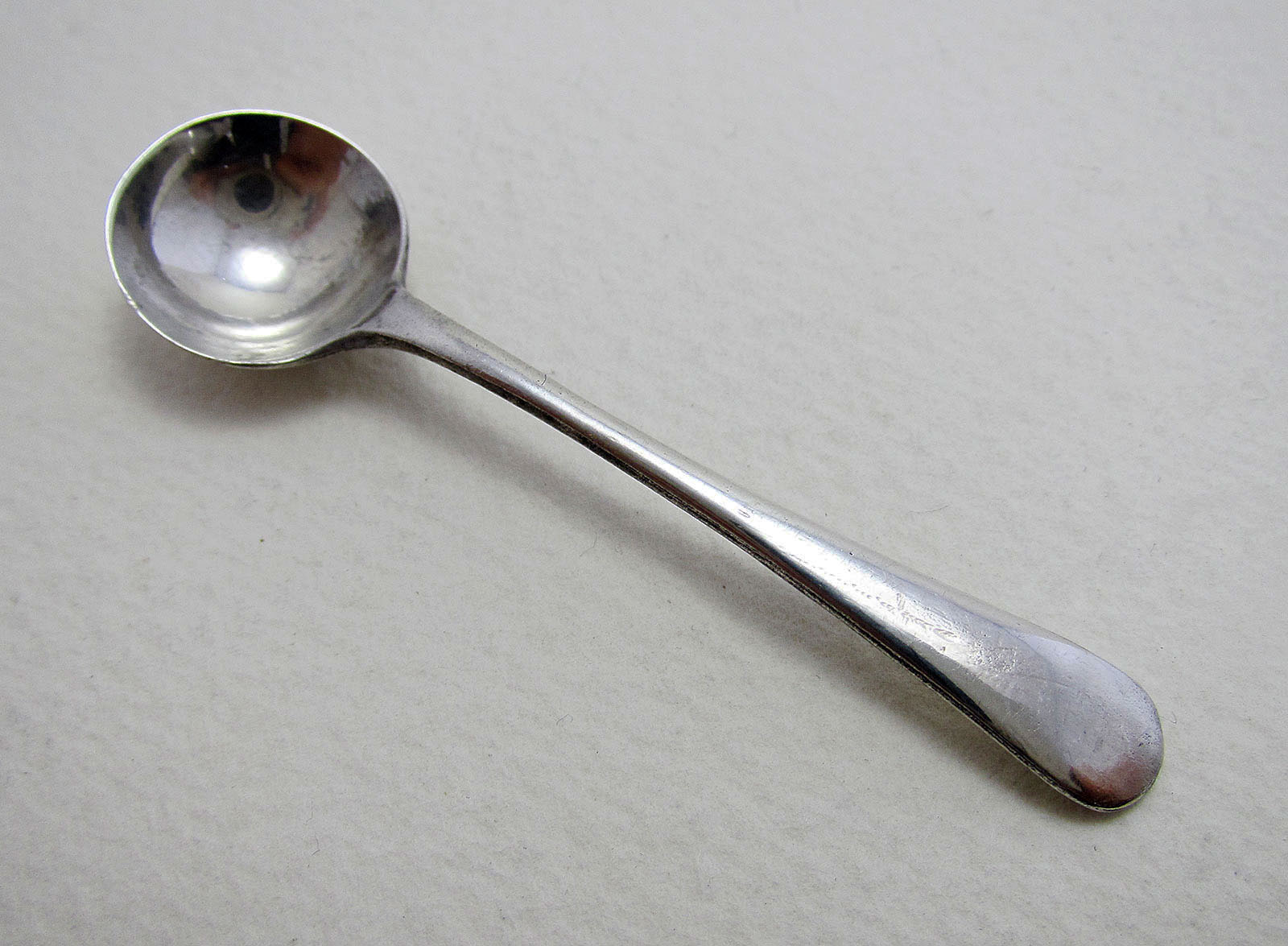 Hallmarked Solid Sterling Silver English Small Salt / Mustard Pot / Condiment Spoon, Sanders & Mackenzie 1921