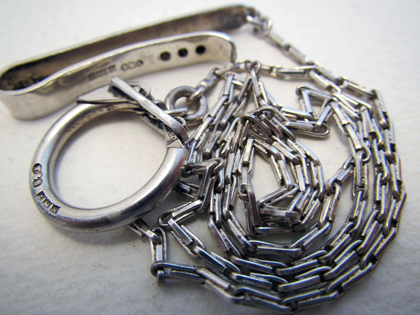 Hallmarked Solid Sterling Silver Vintage Tie Clip Chatelaine Pocket Watch Albert Chain Fob 1960 / 1961