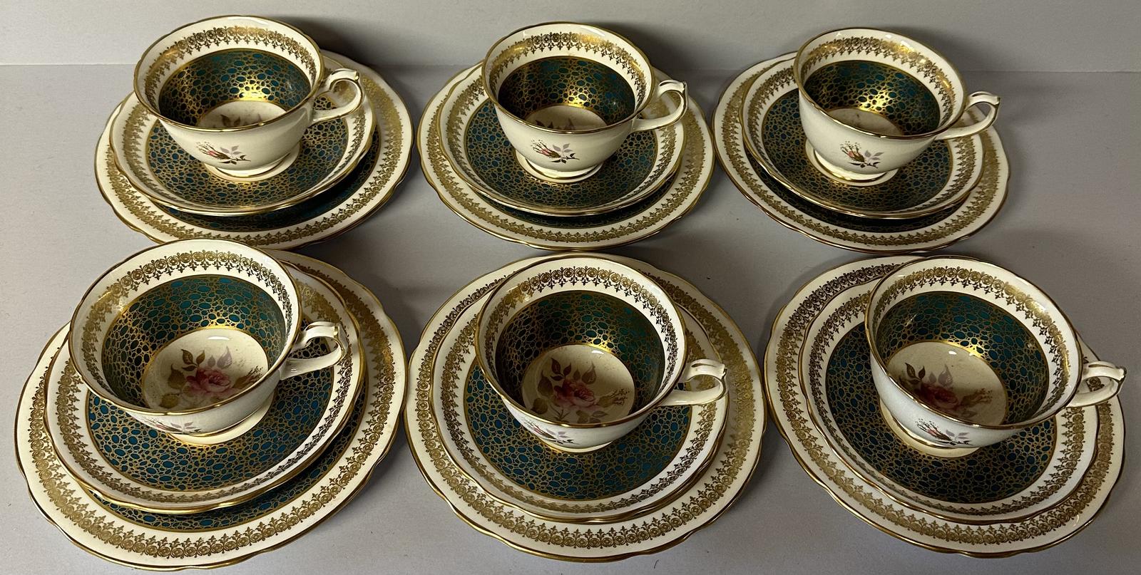 Hammersley Turquoise Gilt & Floral 6 Trios