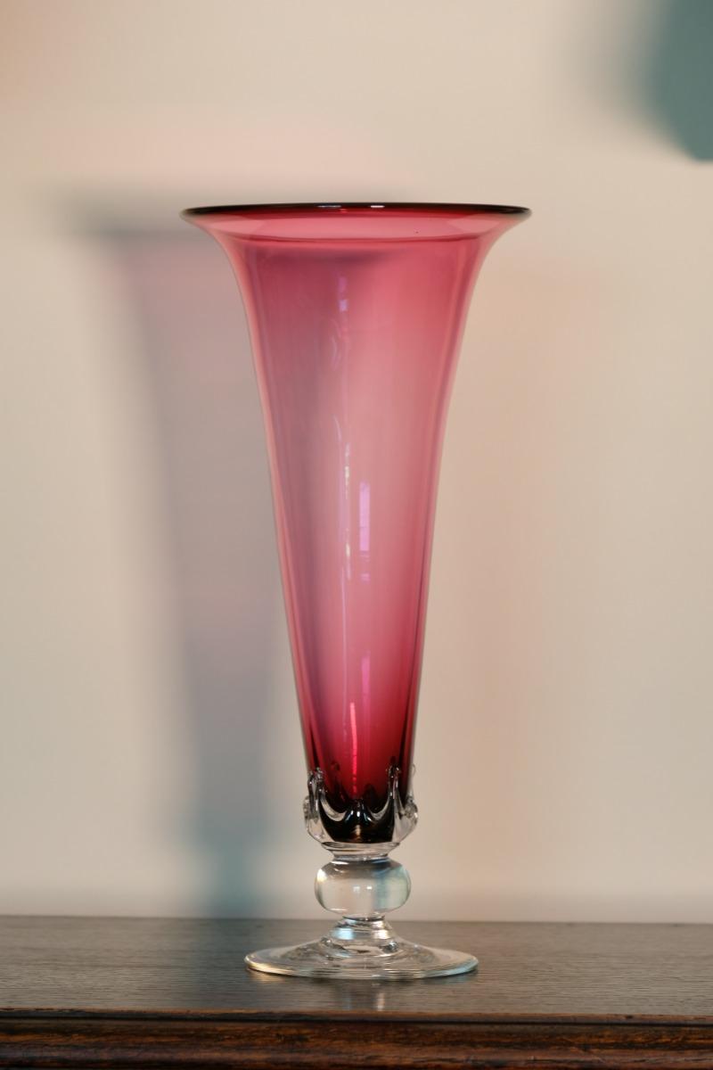 Hand Blown Cranberry Glass with Tear Drop Detailing