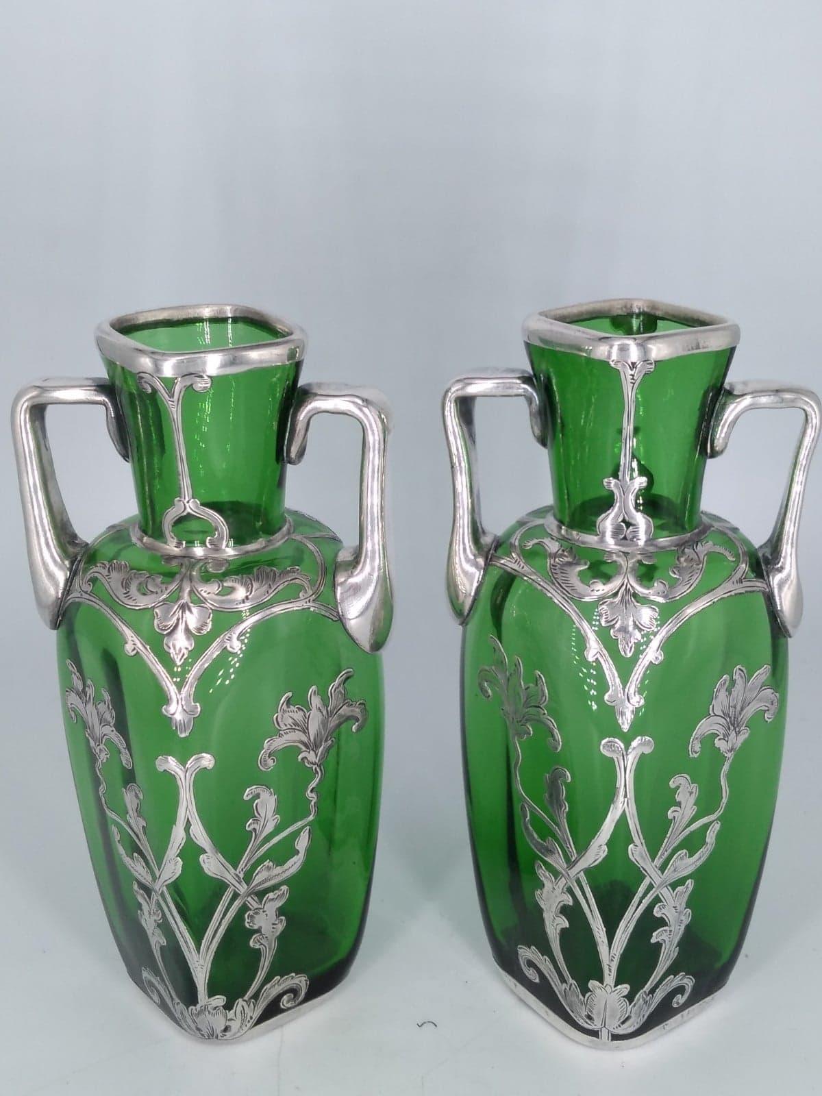 Hand Blown Glass Vases with Pierced Silver Sheet Overlay