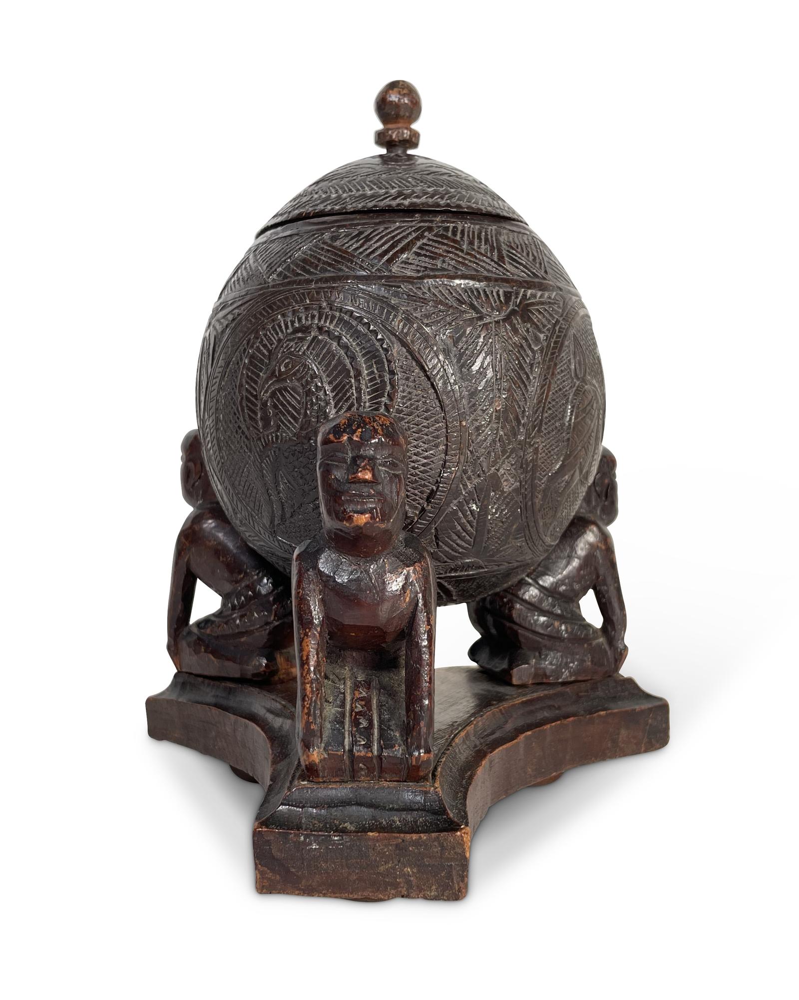 Hand Carved Coconut with Lid on a Stand