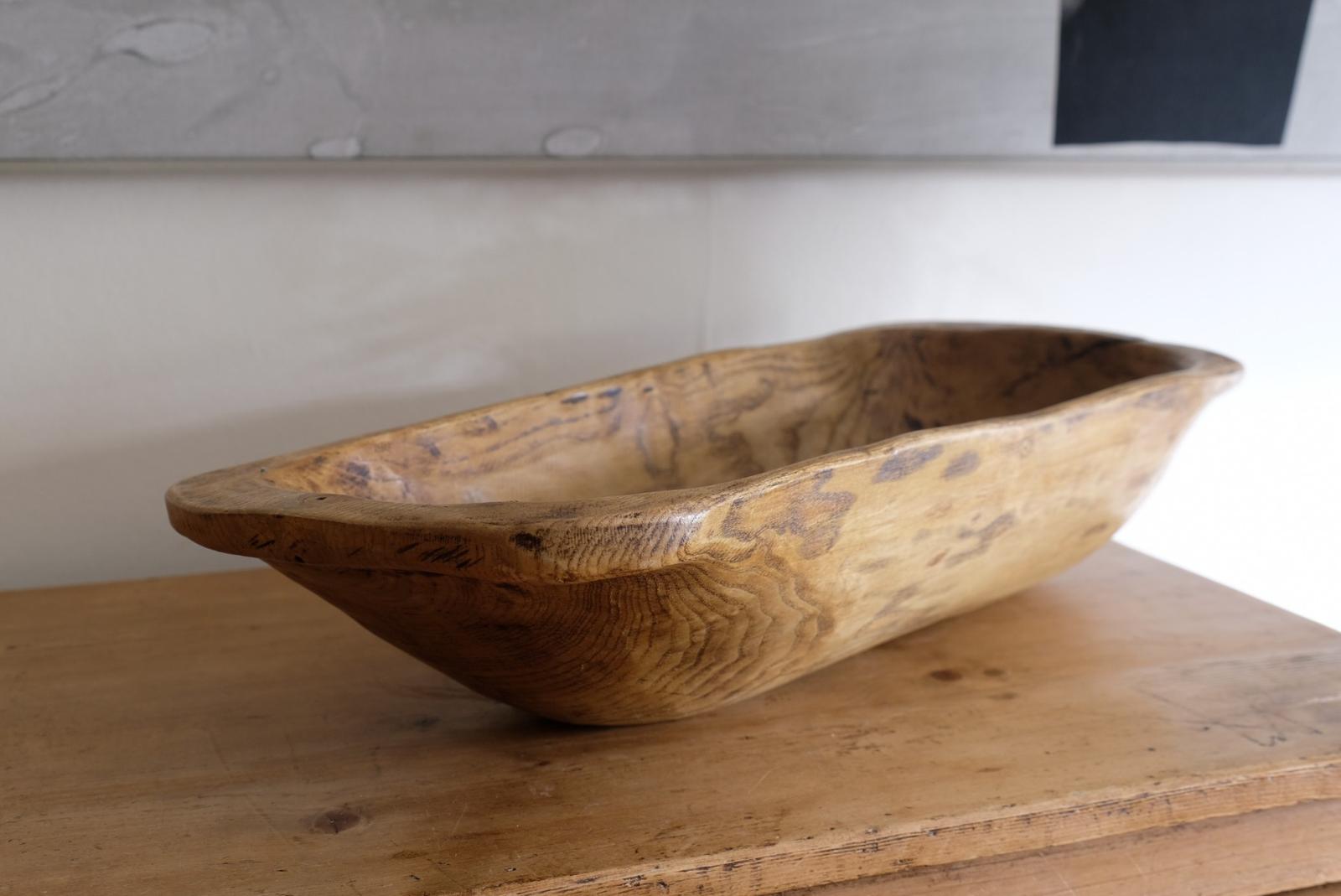 Hand Carved Elm Dough Trough Rectangular Bowl