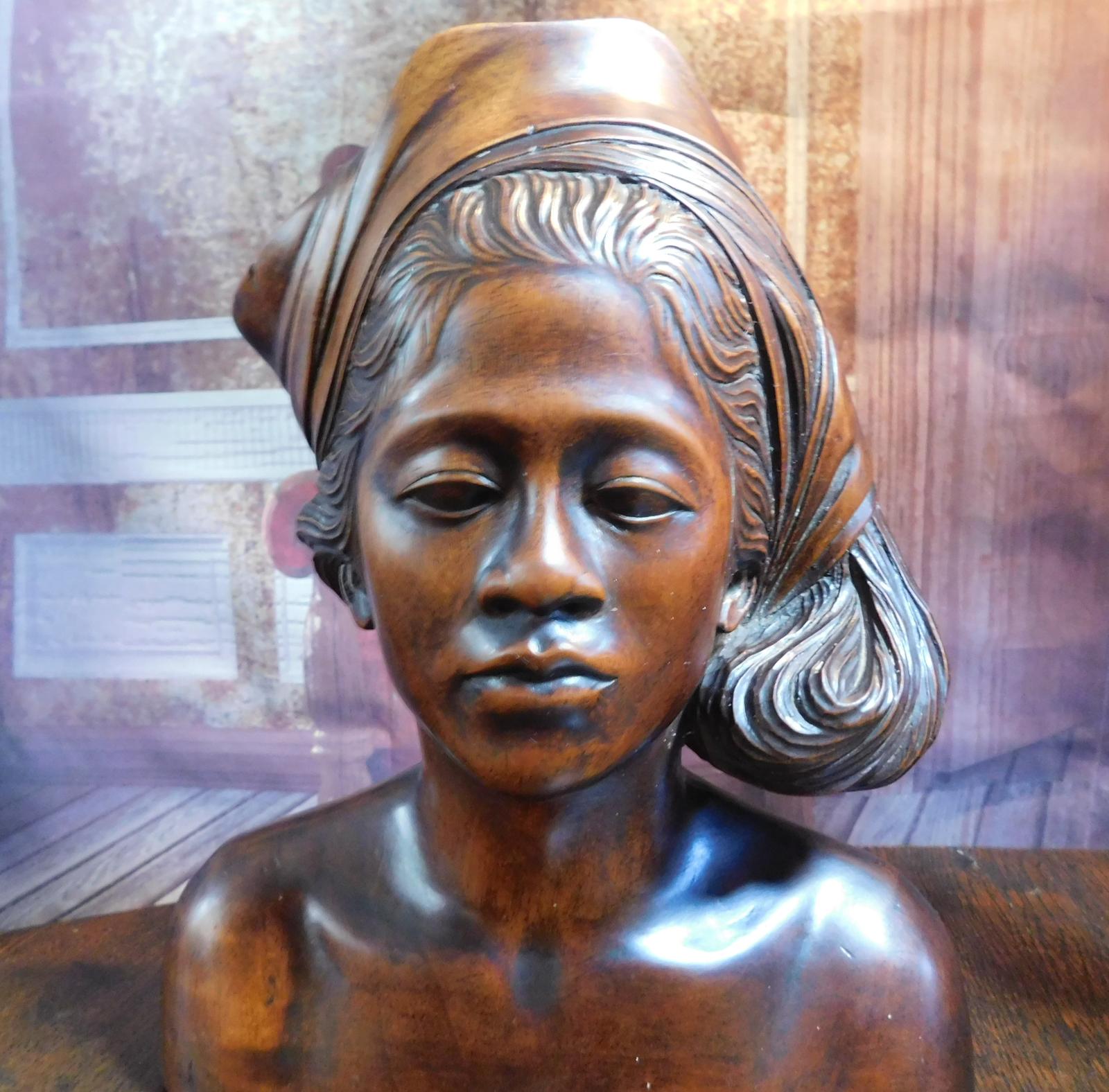 Hand Carved Hardwood Bust of a Young Woman C1950