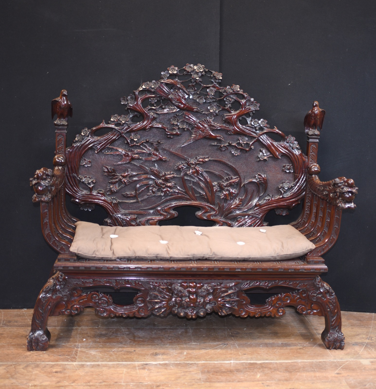 Hand Carved Hardwood Chinese Bench Seat c.1920