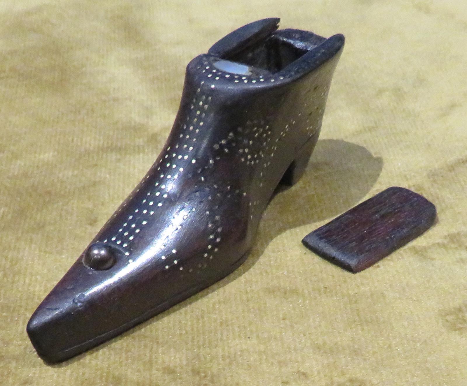 HAND CARVED SNUFF SHOE WITH PIN DECORATION