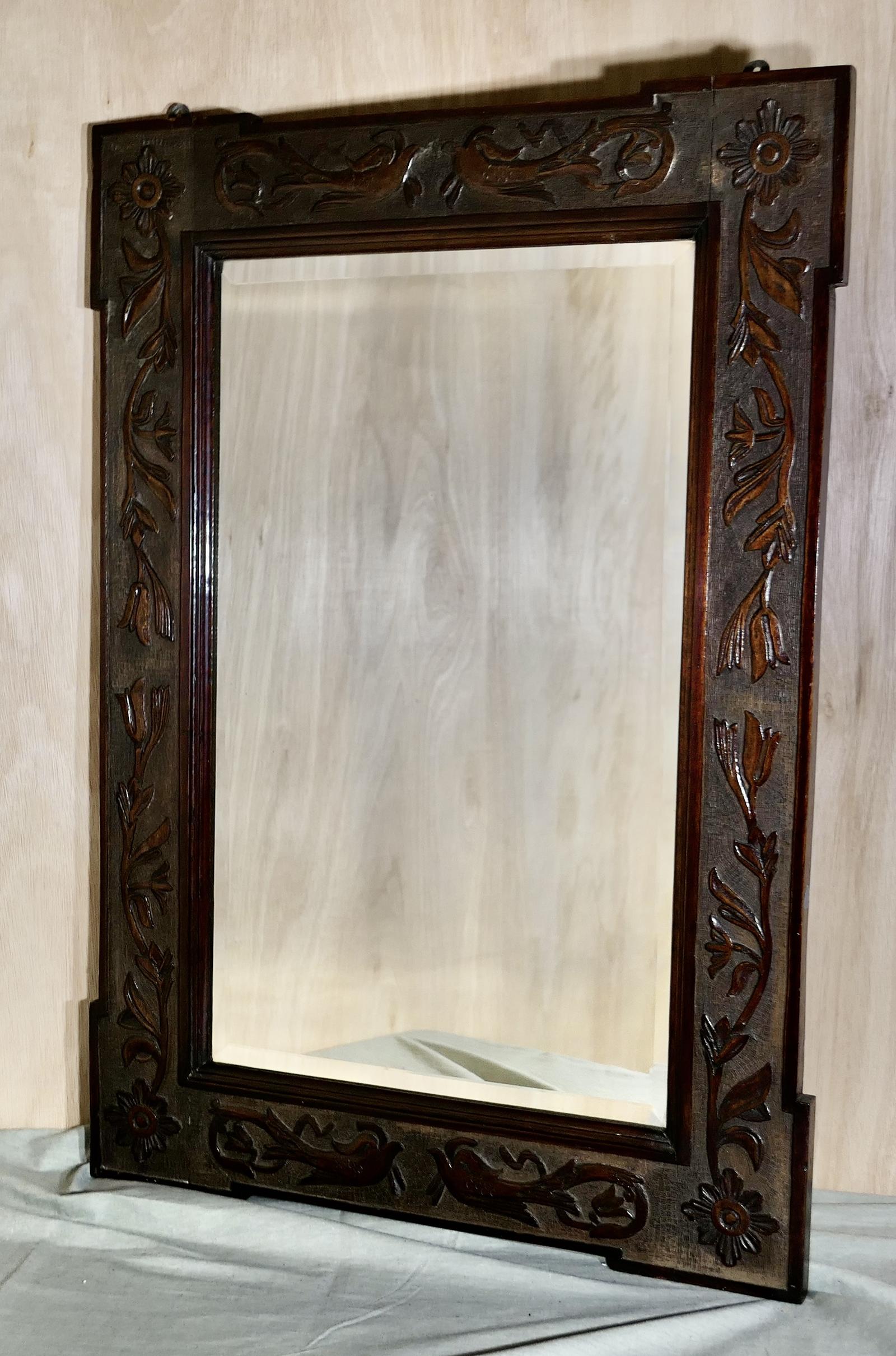 Hand Carved Walnut Frame Mirror, Mythical Birds