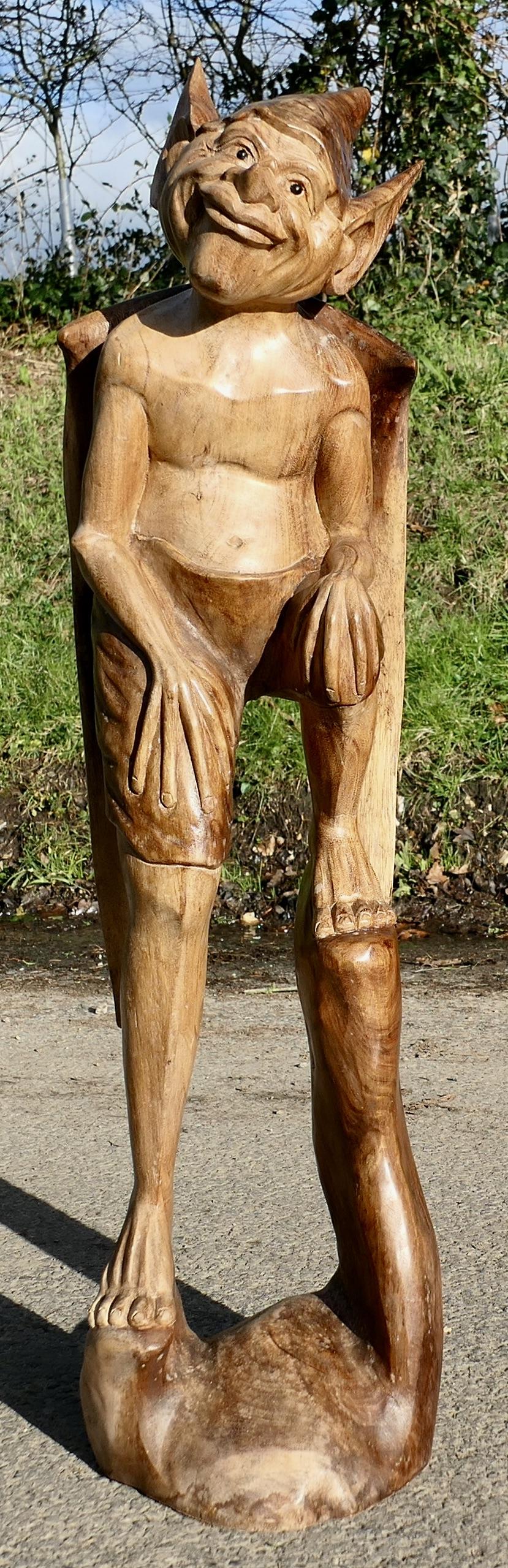 Hand Carved Wooden Statue - Beautiful Polished Elf, Hobbit or Gnome