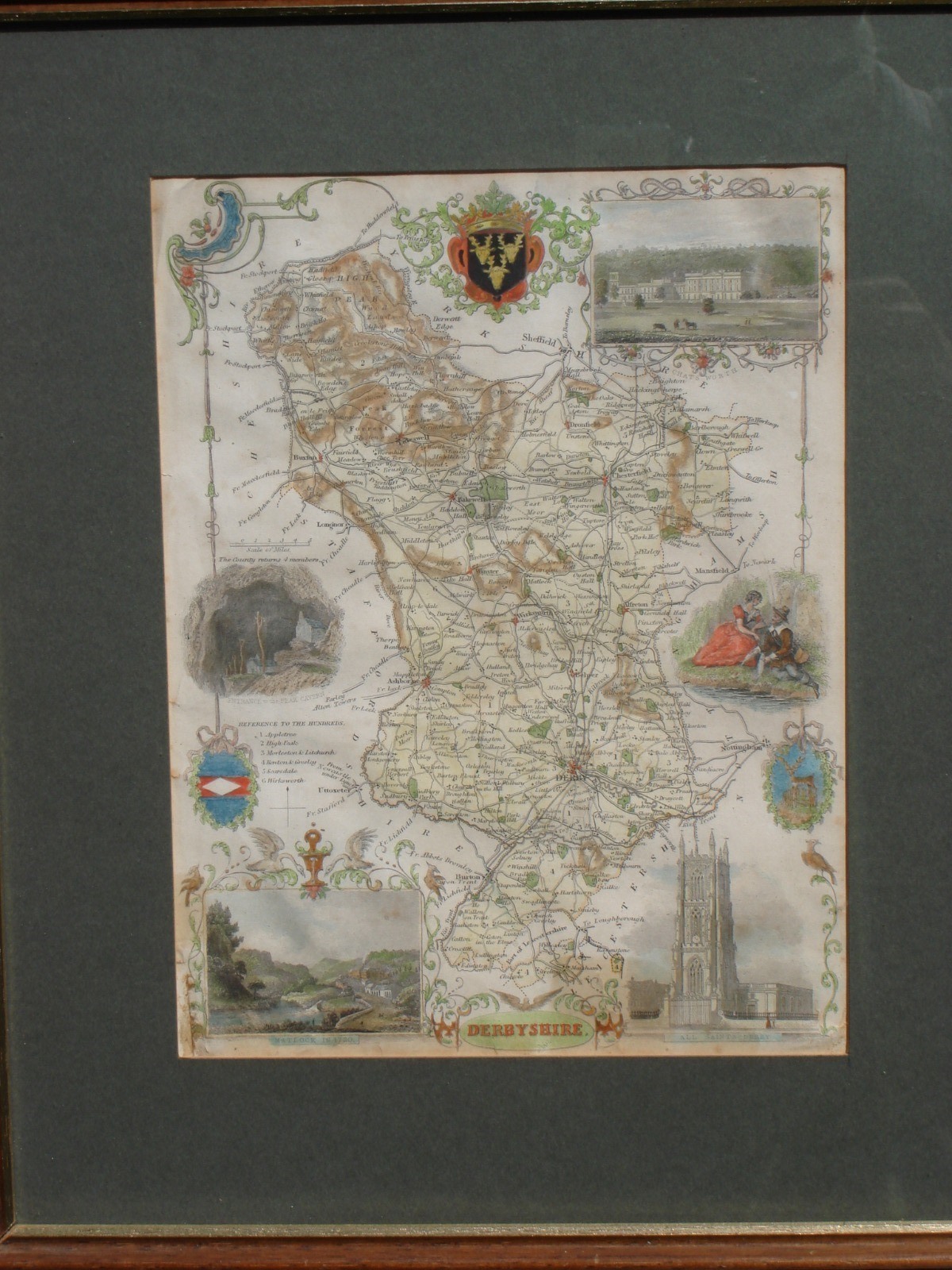 Hand Coloured Map of Derbyshire c.1840 Framed & Glazed