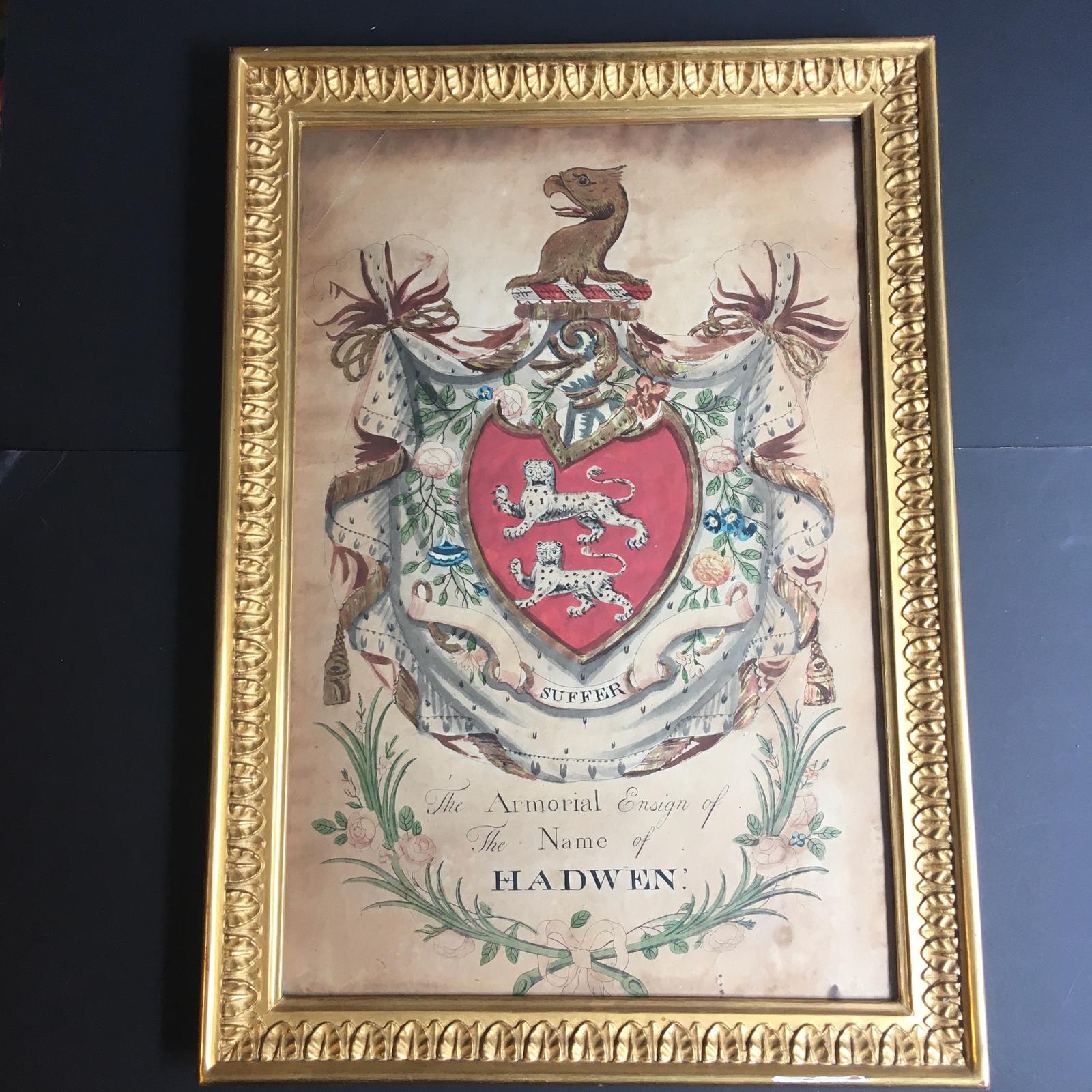 Hand Painted Amorial of the Hadwen Family by James Robertson c.1770