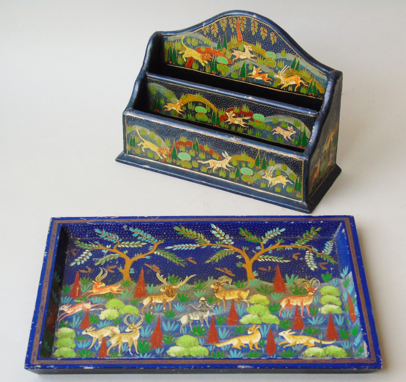 Hand Painted Laquered Persian Style Letter Rack & Desk Tray