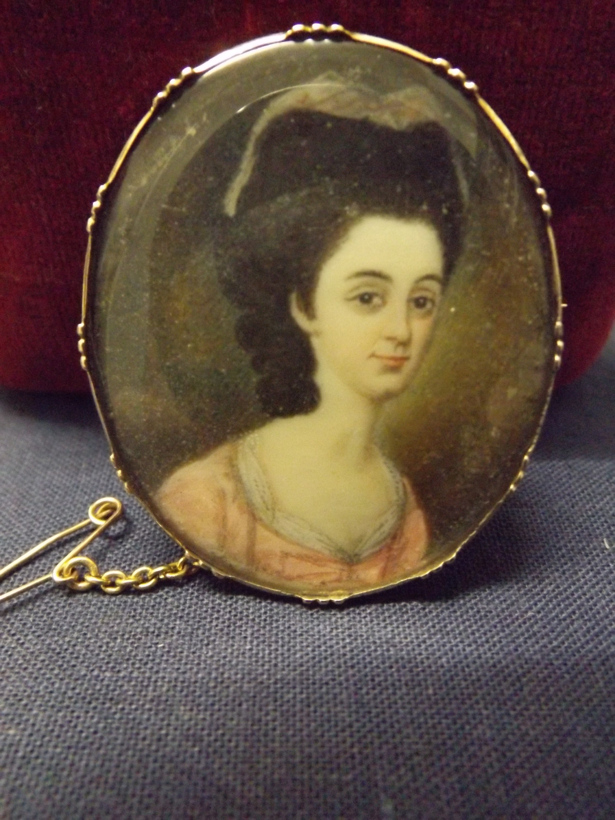 Hand Painted Miniature Portrait on Ivory Gold Brooch & Pin Frame c.1780