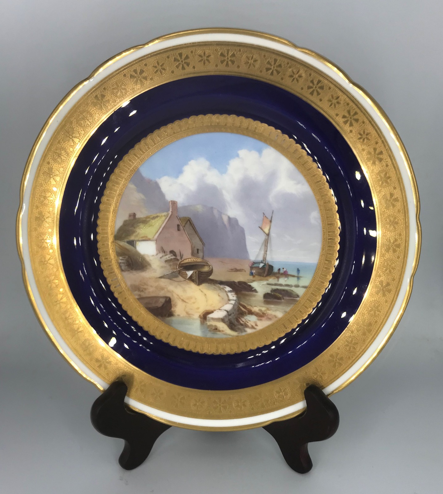 Hand Painted Minton Plate. Coastal Scene, Cottage & Sailing Boats by John Eyre