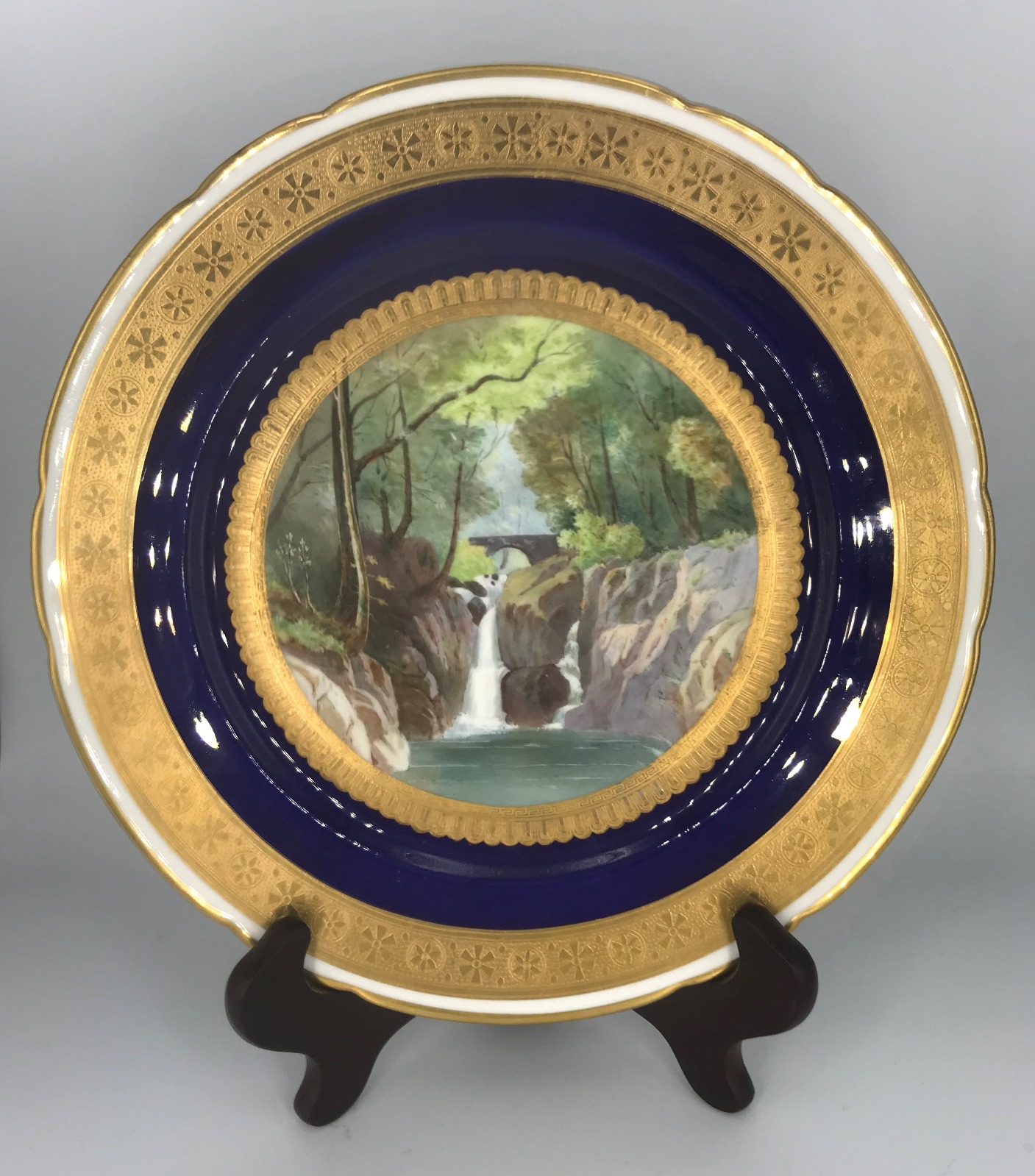 Hand Painted Minton Plate. Waterfall & Bridge in Wood by John Eyre