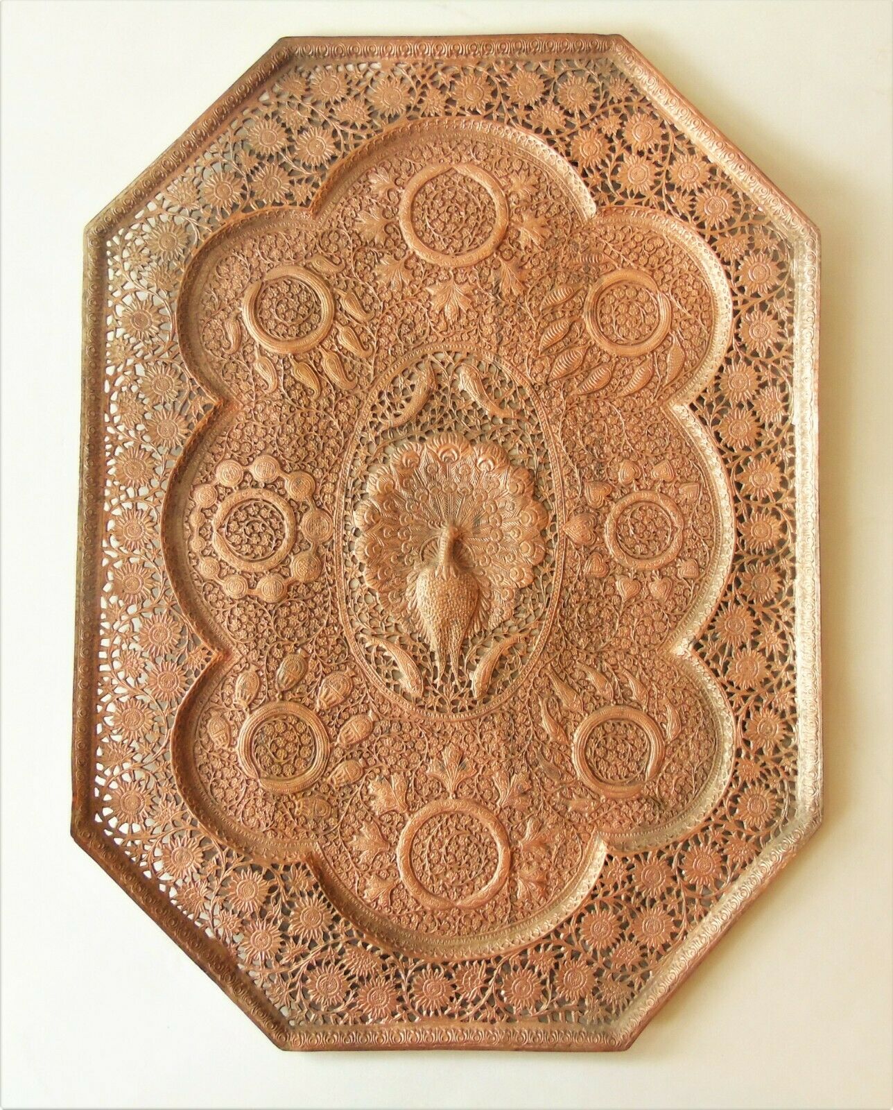 Hand Tooled Indian Copper Peacock Panel c.1900