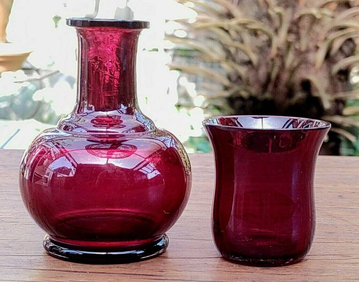 Handblown Ruby Red Glass Tumble up Bedside Night Water Decanter Carafe
