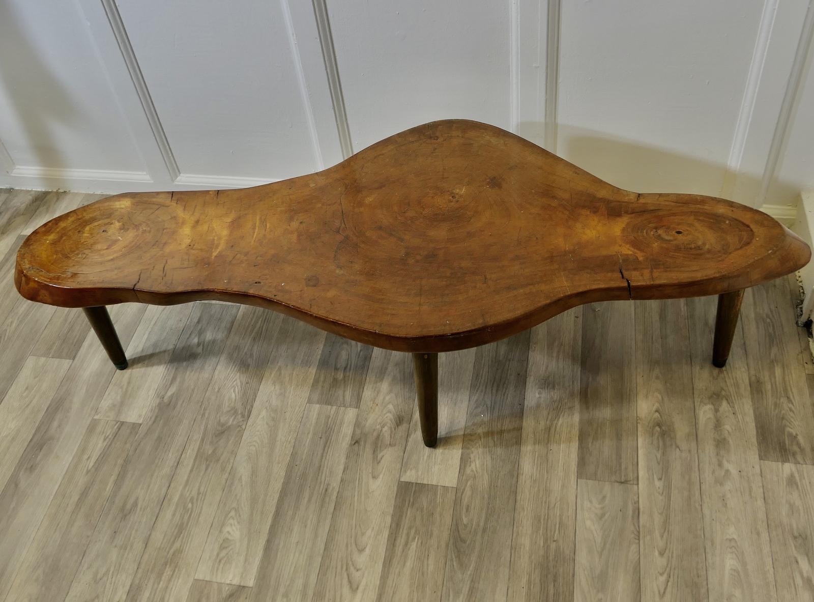 Handcrafted Freeform Live Edge Solid Elm Coffee Table