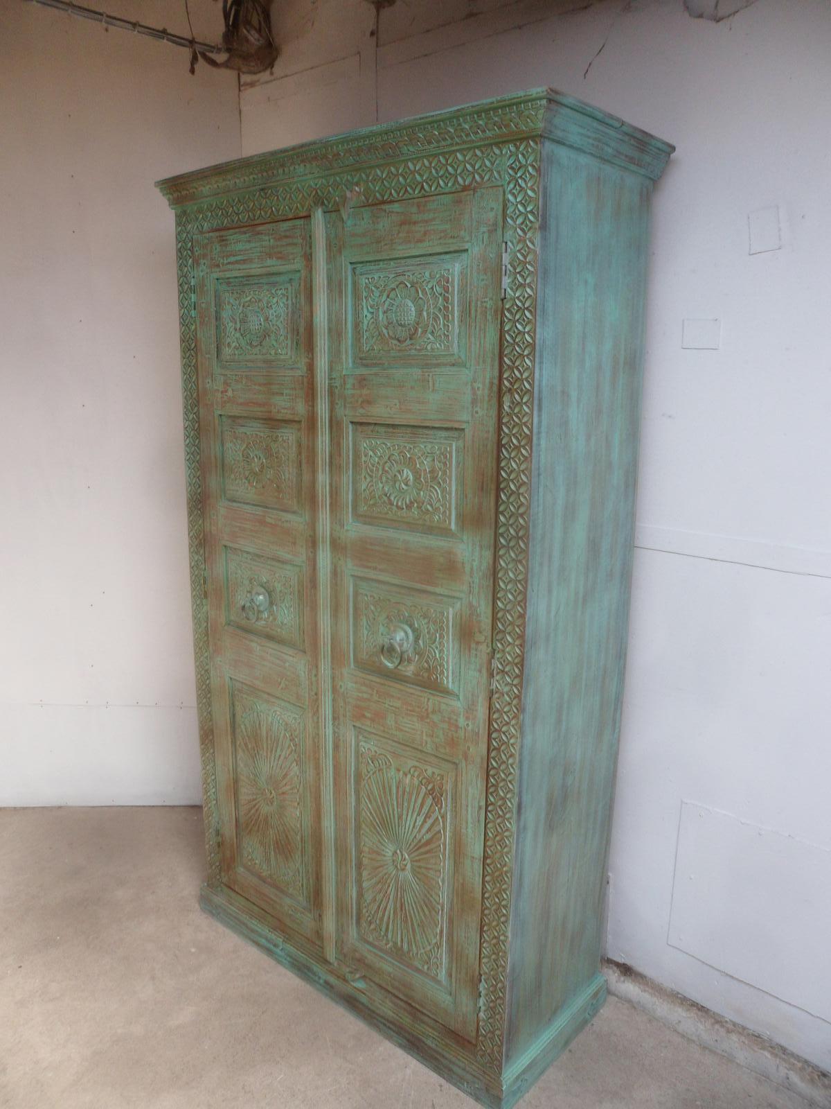 Handmade Indian Mango & Teak Large Painted Green 2 Door Storage Cupboard