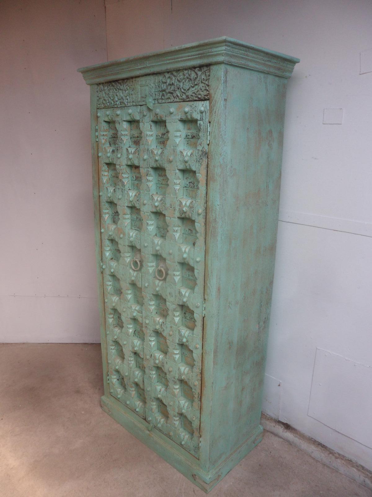 Handmade Indian Mango & Teak Large Painted Light Green 2 Door Storage Cupboard