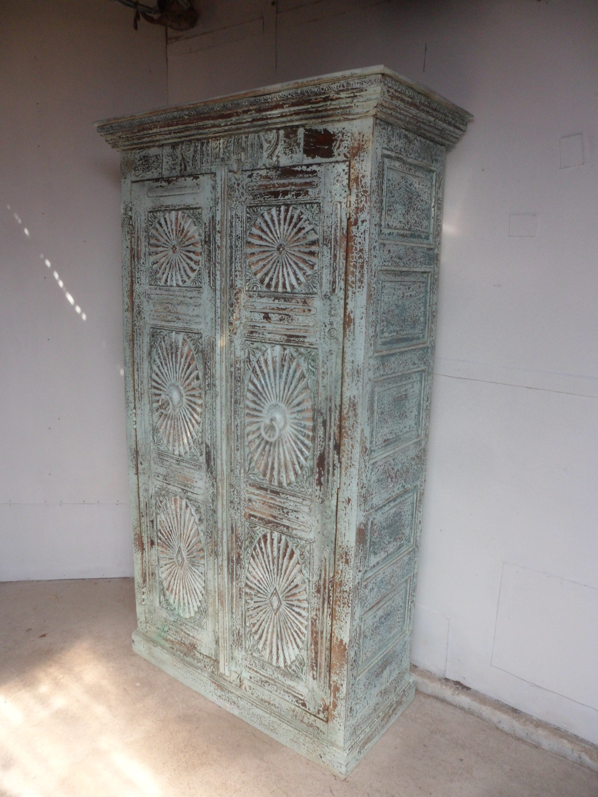 Handmade Indian Mango & Teak Large Painted Shabby Chic 2 Door Storage Cupboard