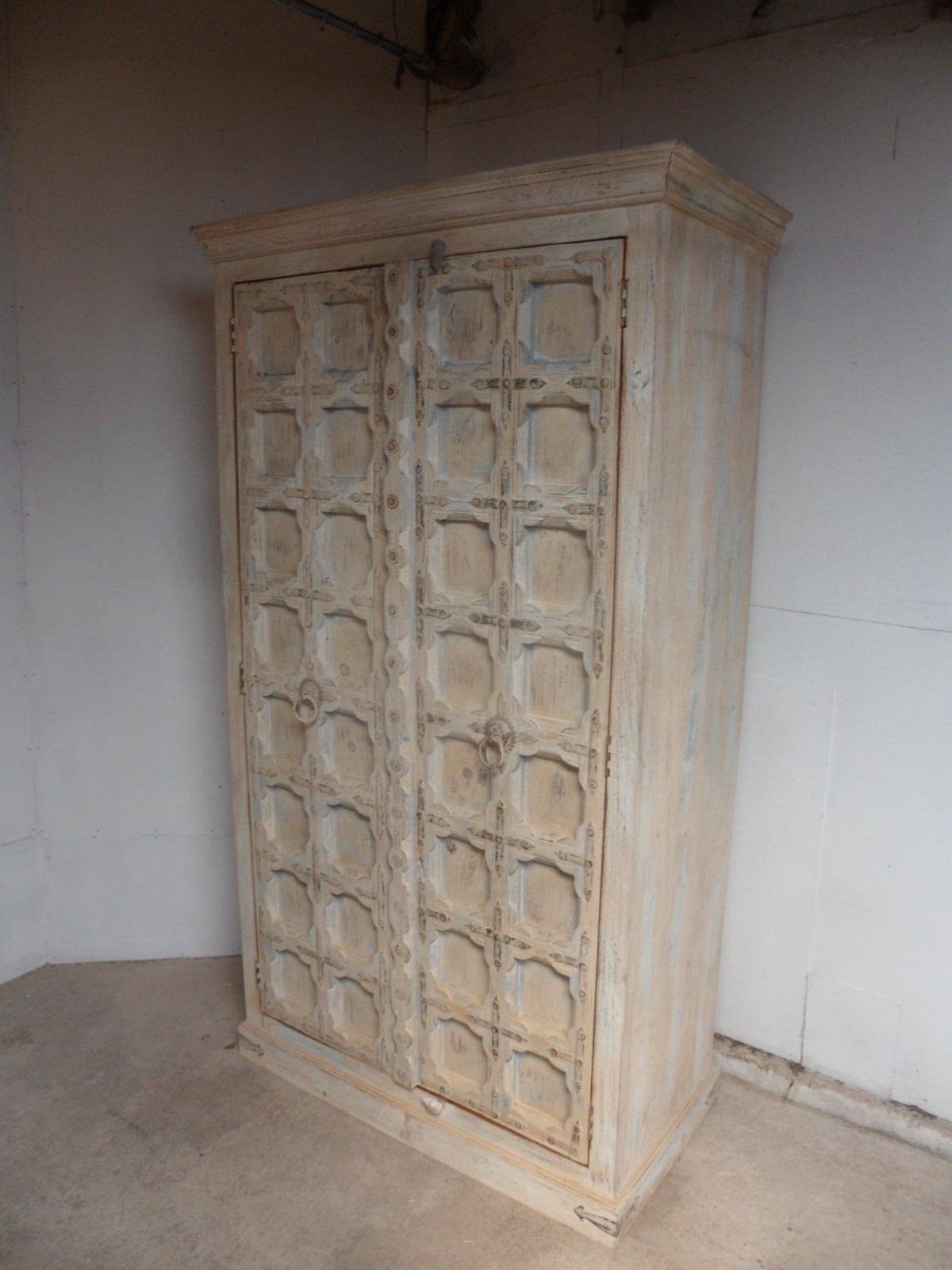 Handmade Indian Mango & Teak Large Painted Shabby Chic 2 Door Storage Wardrobe