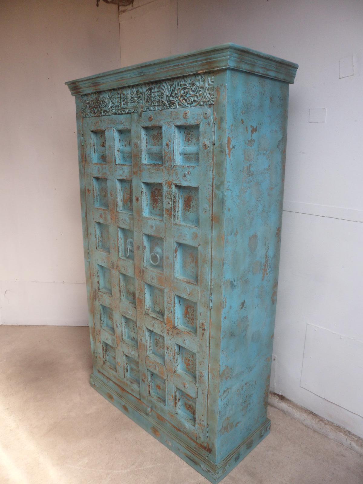 Handmade Indian Mango & Teak Large Painted Sky Blue 2 Door Storage Cupboard