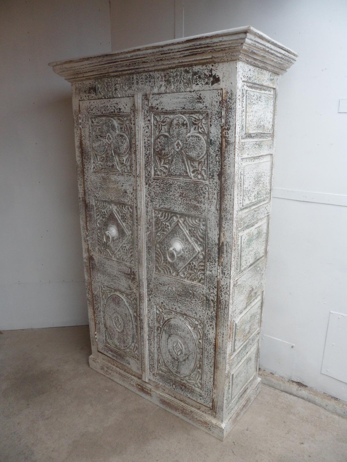 Handmade Indian Mango & Teak Large Painted White & Green 2 Door Storage Cupboard