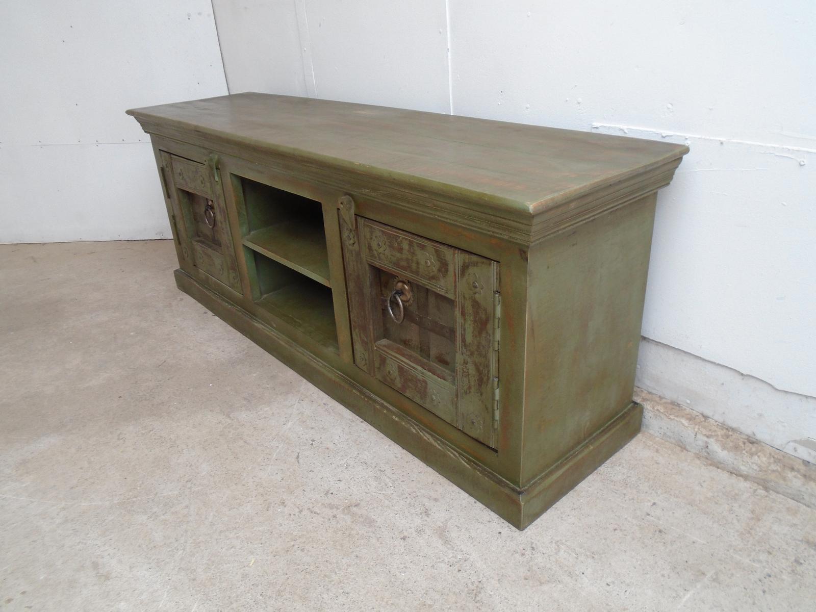 Handmade Indian Mango / Teak Low & Wide Green TV Stand / Cupboard
