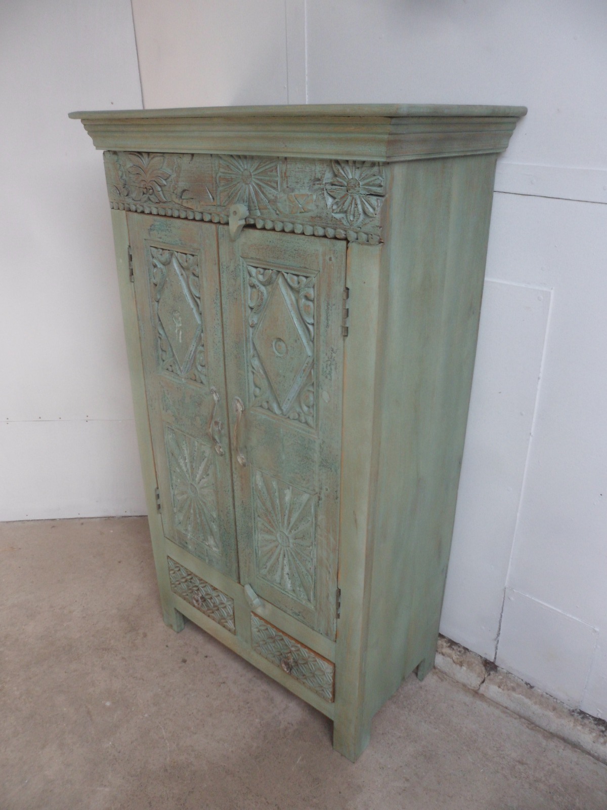Handmade Indian Mango & Teak Painted Shabby Chic 2 Door Storage Cupboard