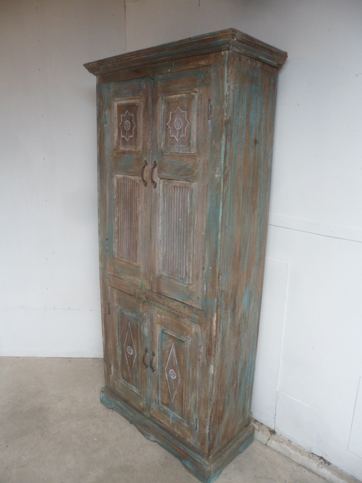 Handmade Indian Mango & Teak Painted Shabby Chic 4 Door Storage Cupboard